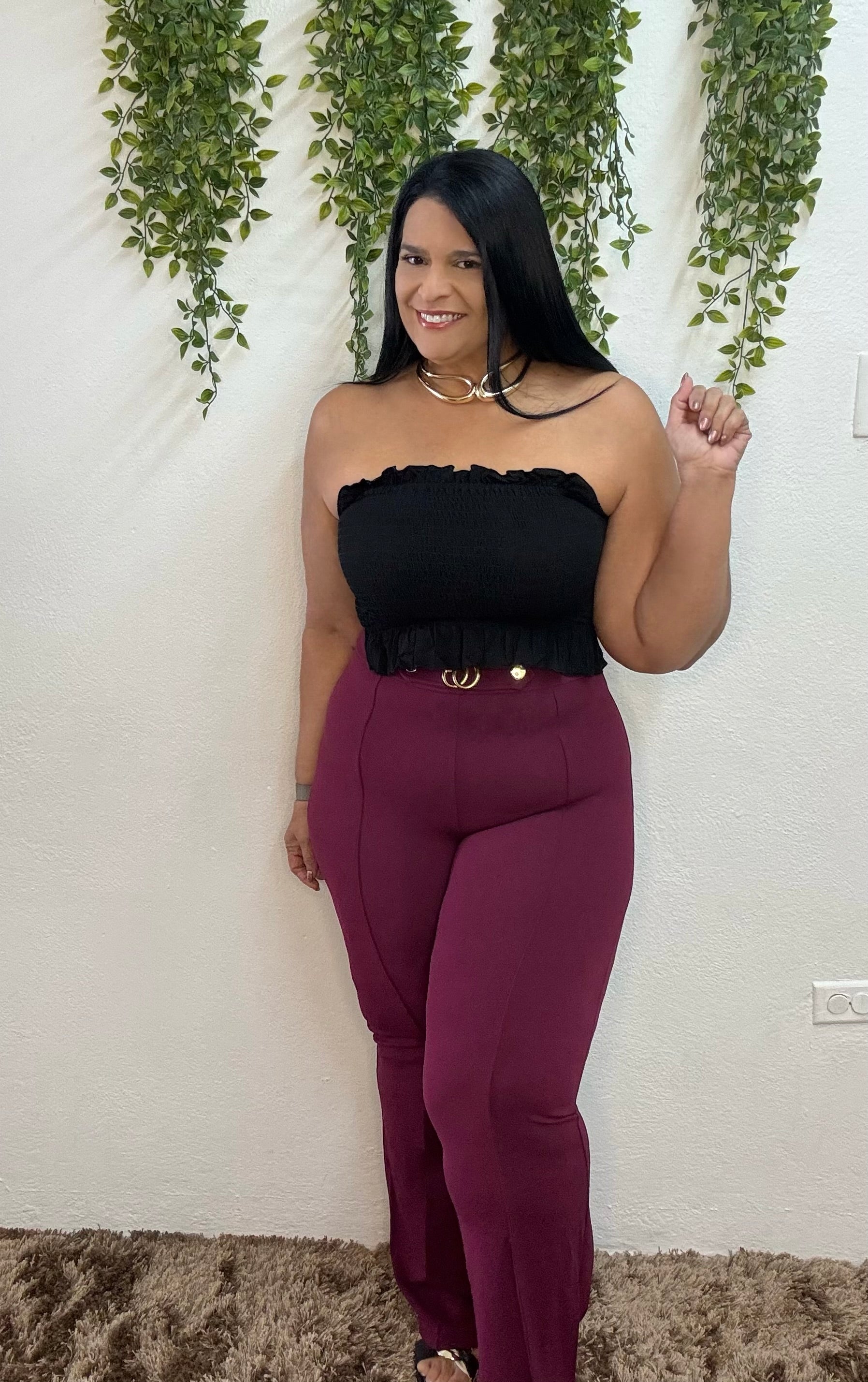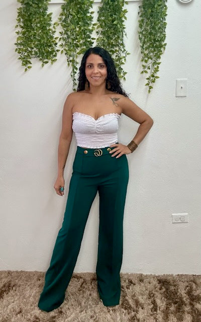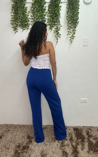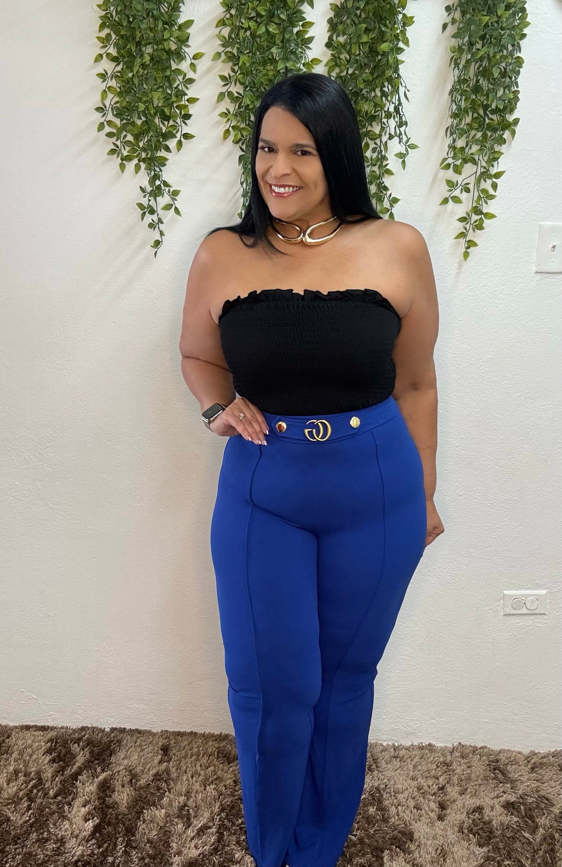 Long pants, super stretch and high-waisted. Zipper at the back.