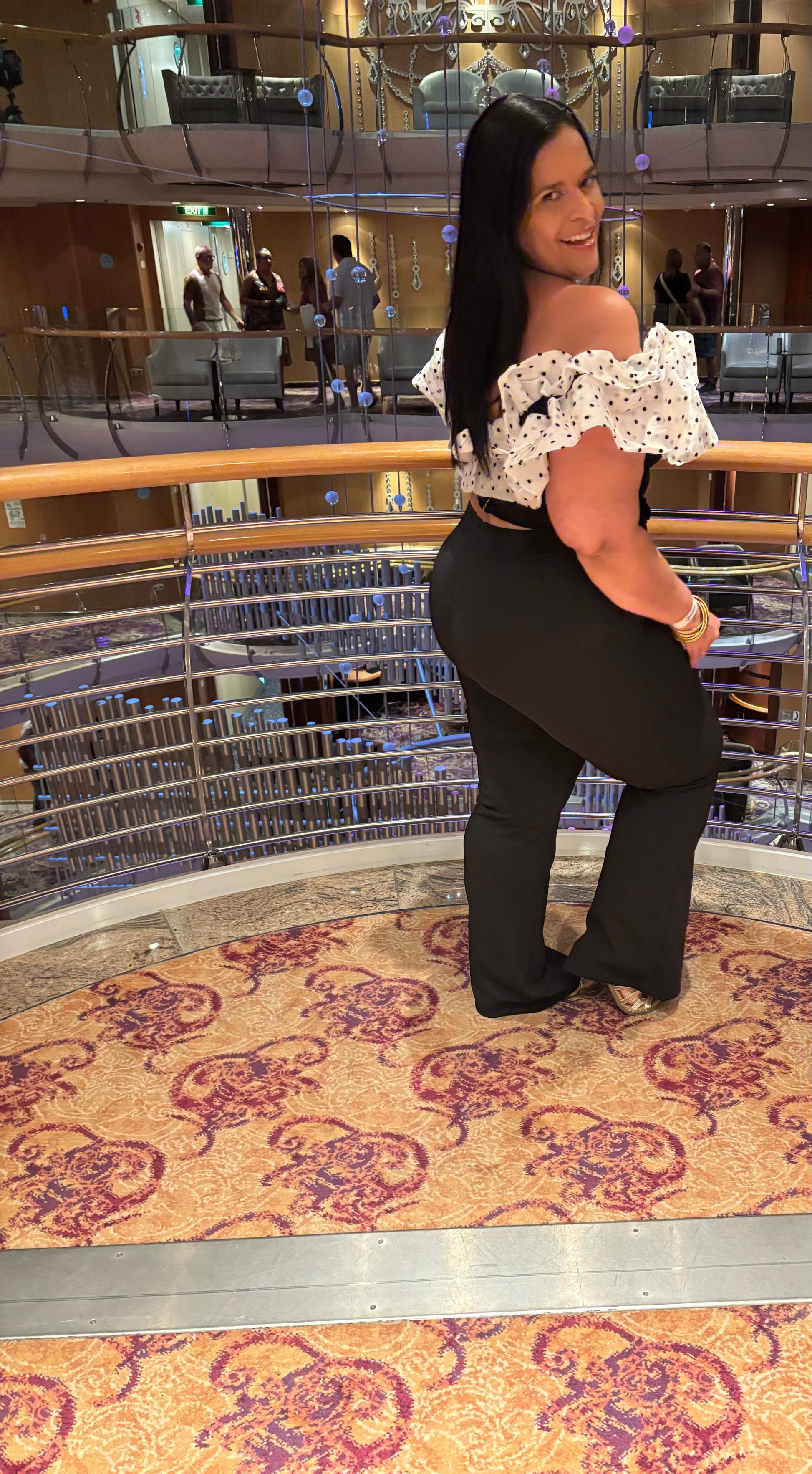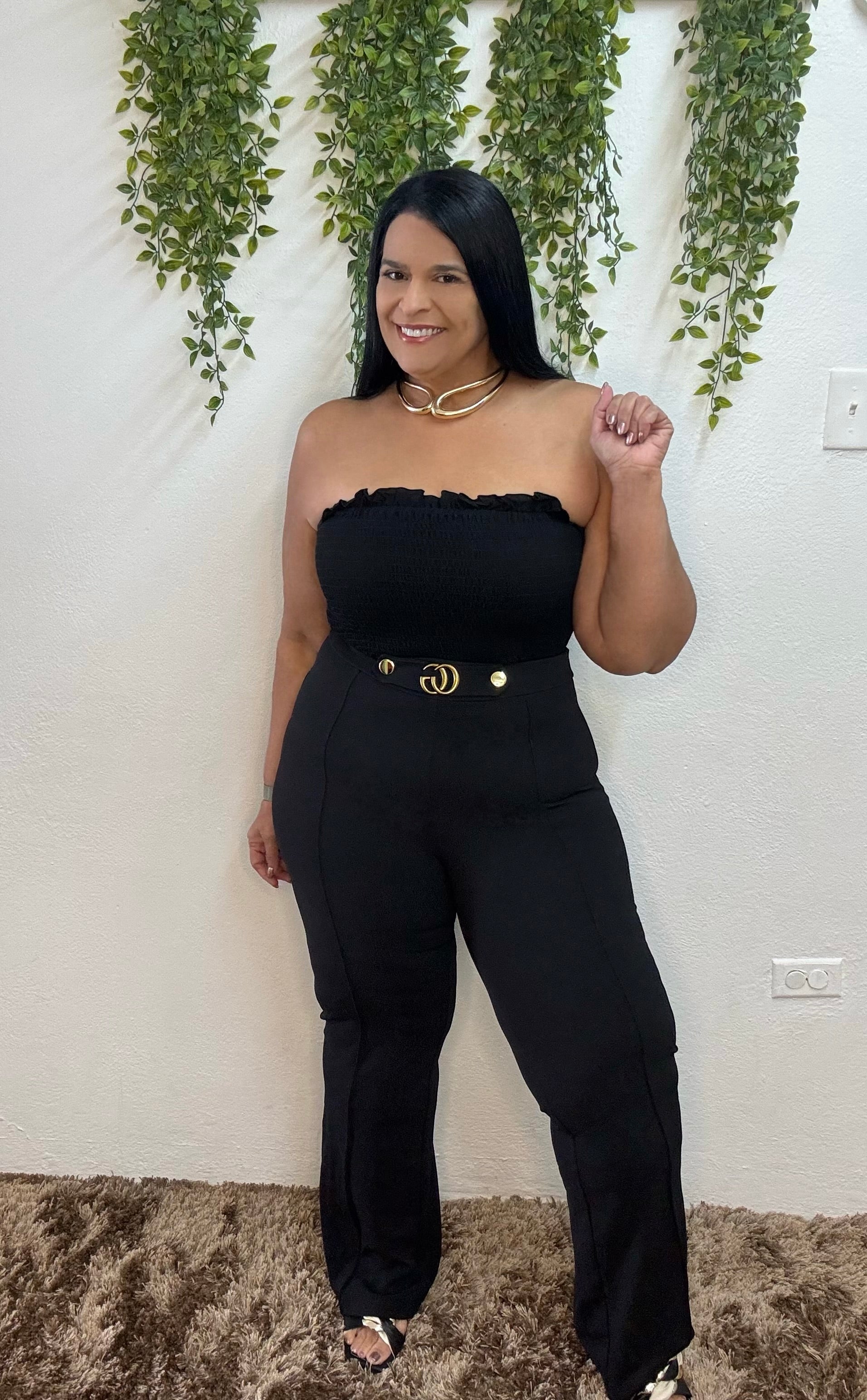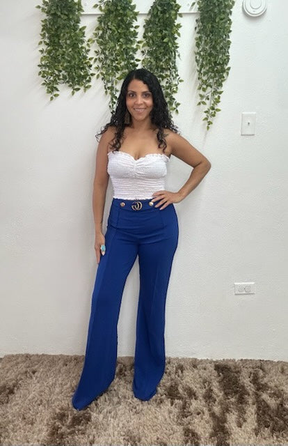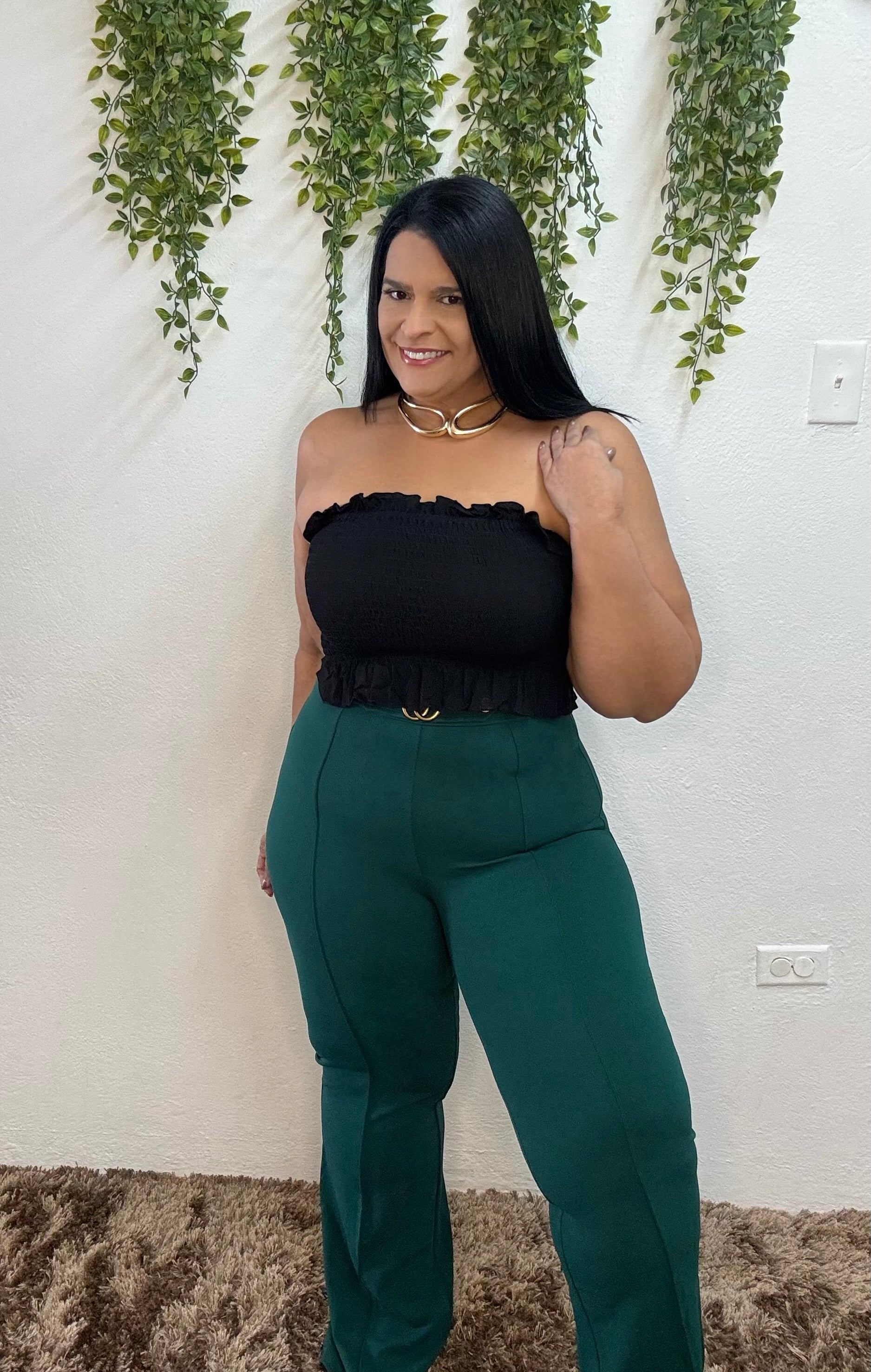 Long pants, super stretch and high-waisted. Zipper at the back.